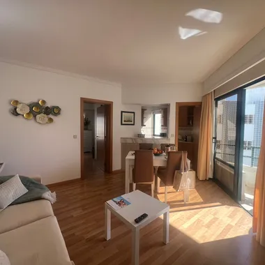 Os apartamentos T1 e T2 têm cozinhas devidamente equipadas com placa, frigorífico, microondas, torradeira, varinha mágica e os utensílios básicos para facilitar o quotidiano, e todos dispõem de varandas com vista para a ampla avenida central.