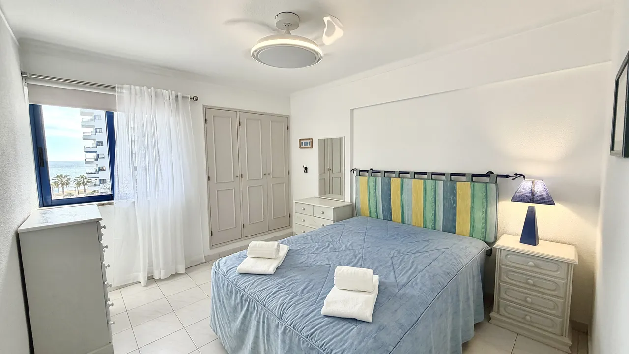 Compostos por 1 quarto com cama de casal, uma casa de banho, cozinha equipada com maquina de lavar roupa e forno, sala com LCD, elevador e varanda com vista mar.