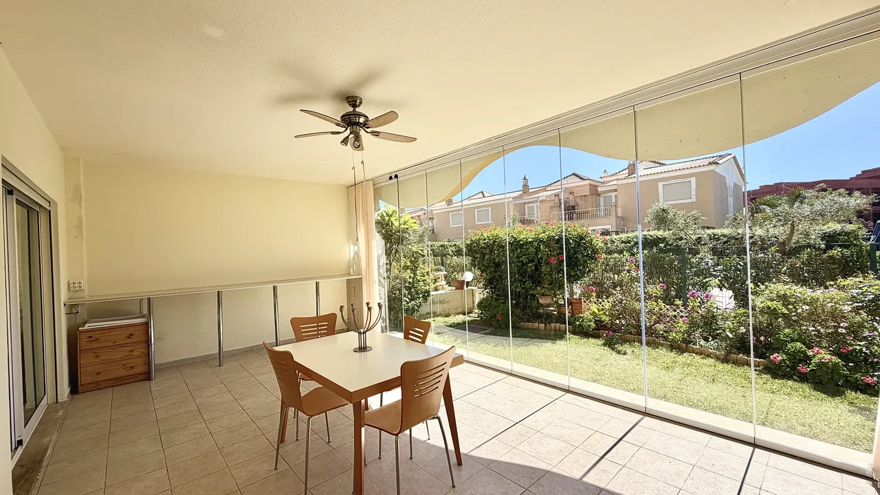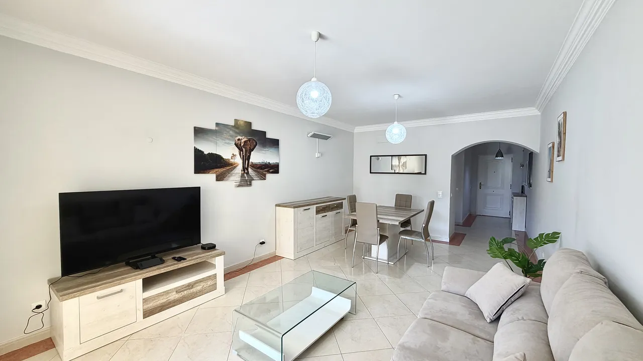 Este apartamento com 2 quartos e duas casas de banho, dispõe de cozinha totalmente equipada, sala com Tv cabo, Wi-Fi , ar condiccionado e oferece ainda um aprazível terraço. O condominio dispõe de piscina e garagem.